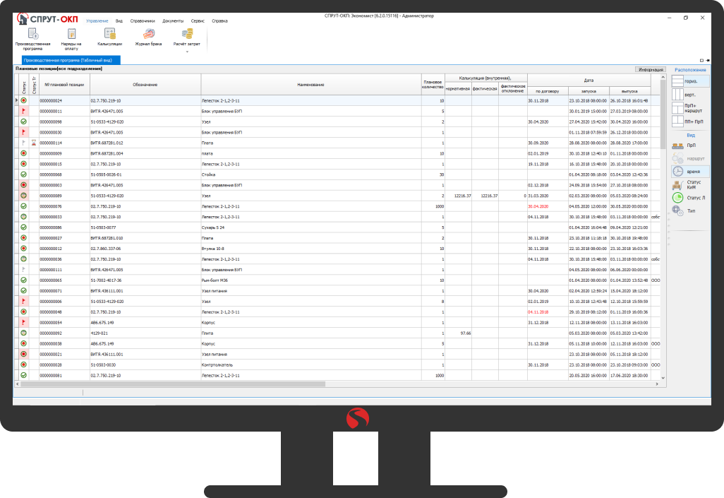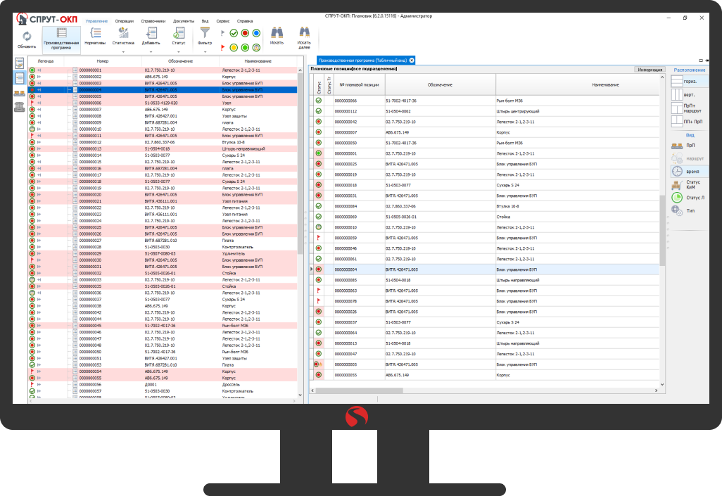 СПРУТ-ОКП предоставляет набор модулей для каждого отдела производства