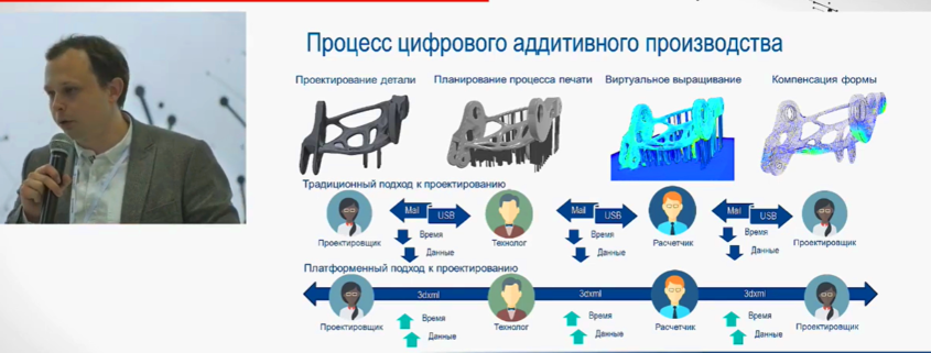 В рамках выставки МЕТАЛЛОБРАБОТКА-2021 прошла самая значимая конференция ИНДУСТРИЯ 4.0. Алексей Сиверский, директор департамента инженерного анализа и создания и цифровых двойников IGA Technologies выступил с докладом «Ускорение аддитивного производства при помощи интегрированной платформы 3DEXPERIENCE 2.0» Развернута актуальная тема машиностроительной отрасли — Будущее аддитивного производства, технологии печати сложных изделий, быстрый экономический эффект. Предложено оптимальное решение наукоемкого процесса — решение PRINT TO PERFORM, которое позволяет: